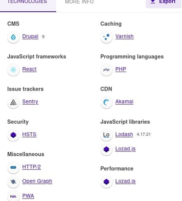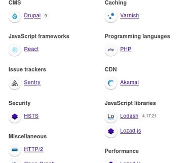 The following is the output of the wappalyzer extension for our target website.