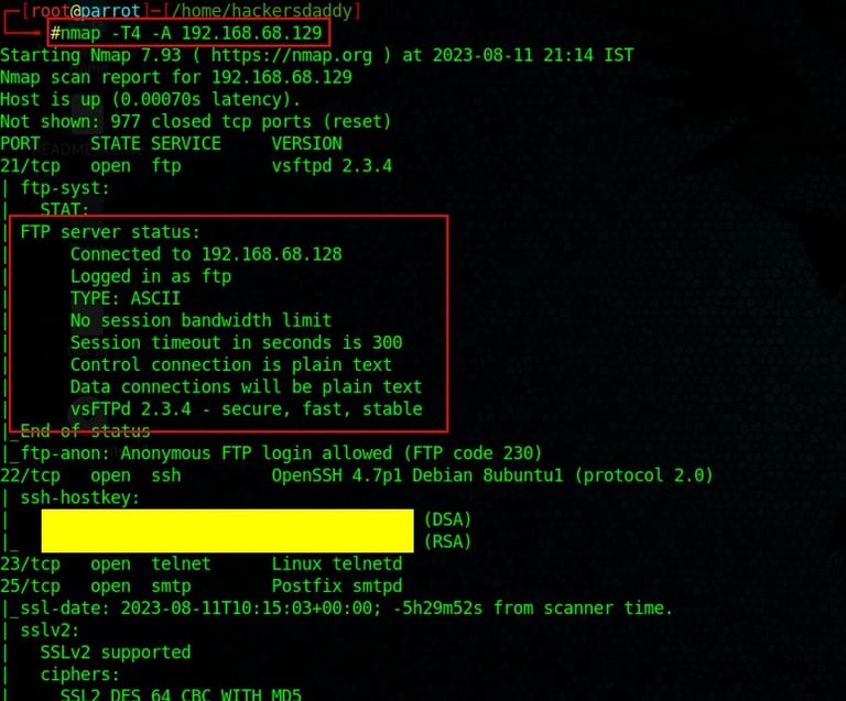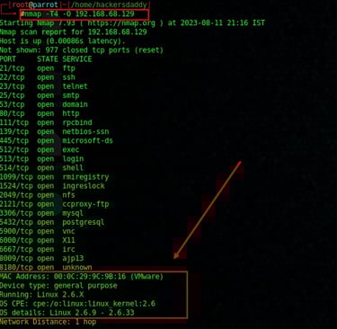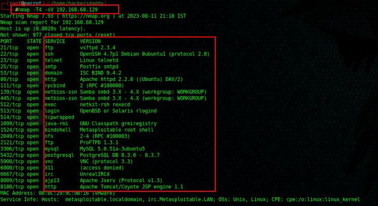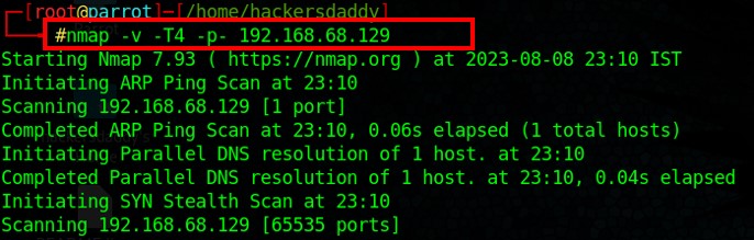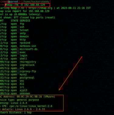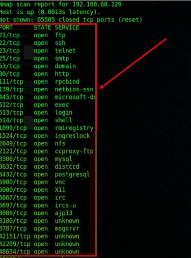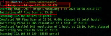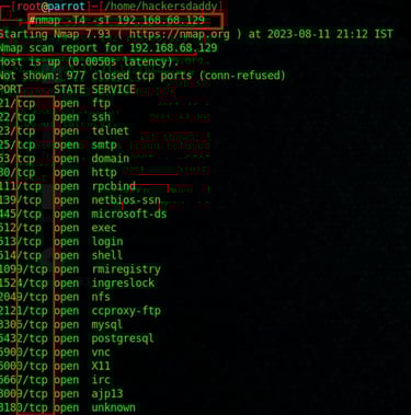 Example : Here is the port scanning command and output